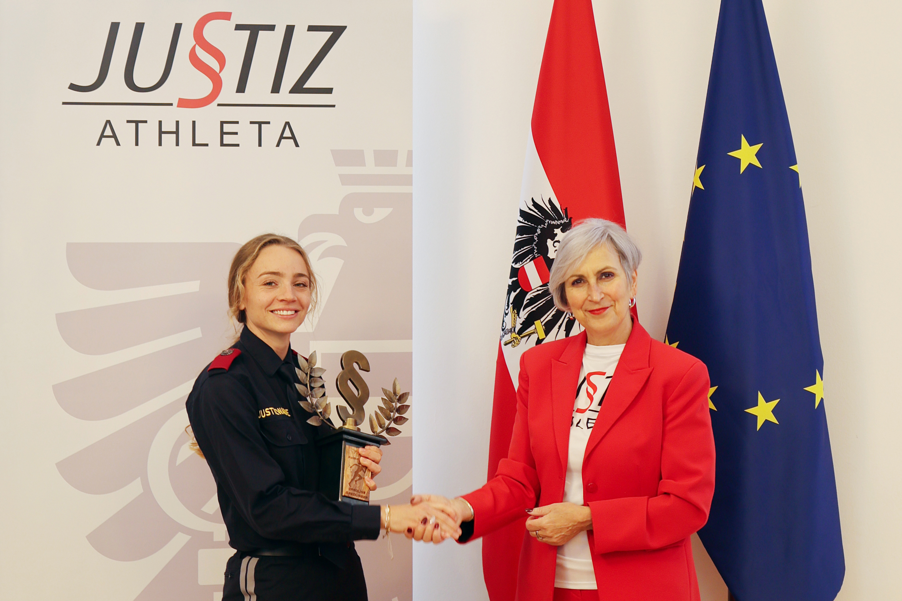 Diese Woche hat Justizministerin Anna Sporrer den ersten Justizsportaward 2025 an die Leichtathletin Caroline Bredlinger verliehen. Damit sollen herausragende Leistungen der Justiz-Athletinnen und Athleten noch einmal besonders vor den Vorhang geholt und gewürdigt werden. Im Rahmen des Festaktes wurde zudem ein Kooperationsvertrag mit dem Verband Österreichischer Nachwuchsleistungssportmodelle (VÖN) unterzeichnet, um die Justiz noch besser als attraktive Arbeitgeberin für sportliche Talente zu positionieren.